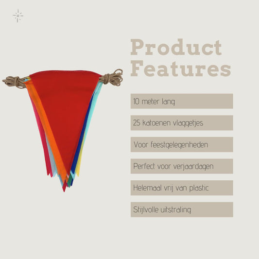Katoenen vlaggetjes - 10 meter vlaggenlijn