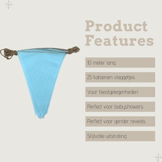 Katoenen vlaggetjes - blauw - 10 meter vlaggenlijn