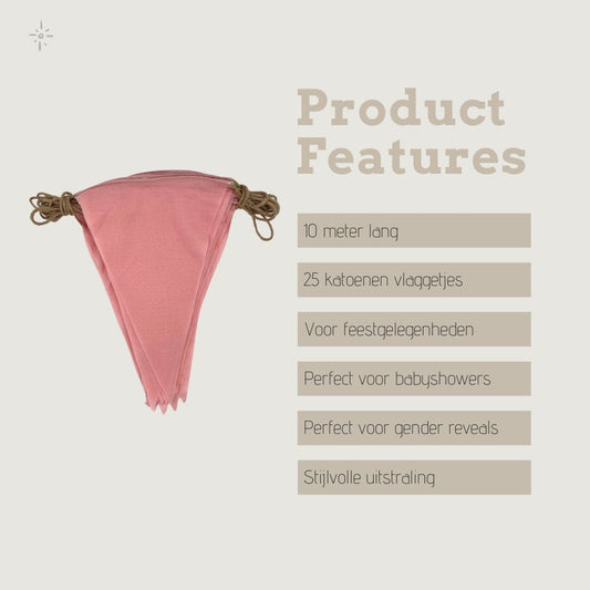 Katoenen vlaggetjes - roze - 10 meter vlaggenlijn