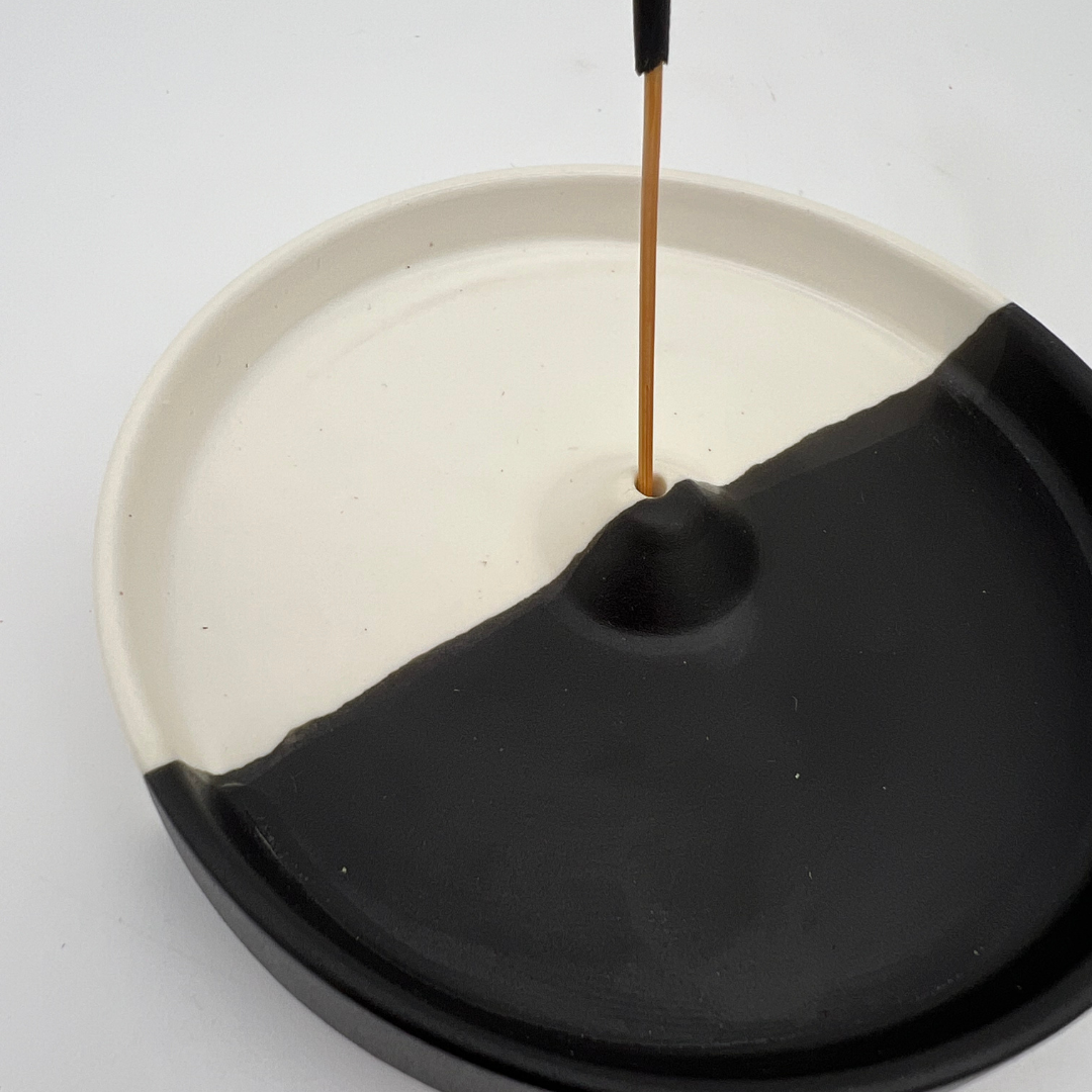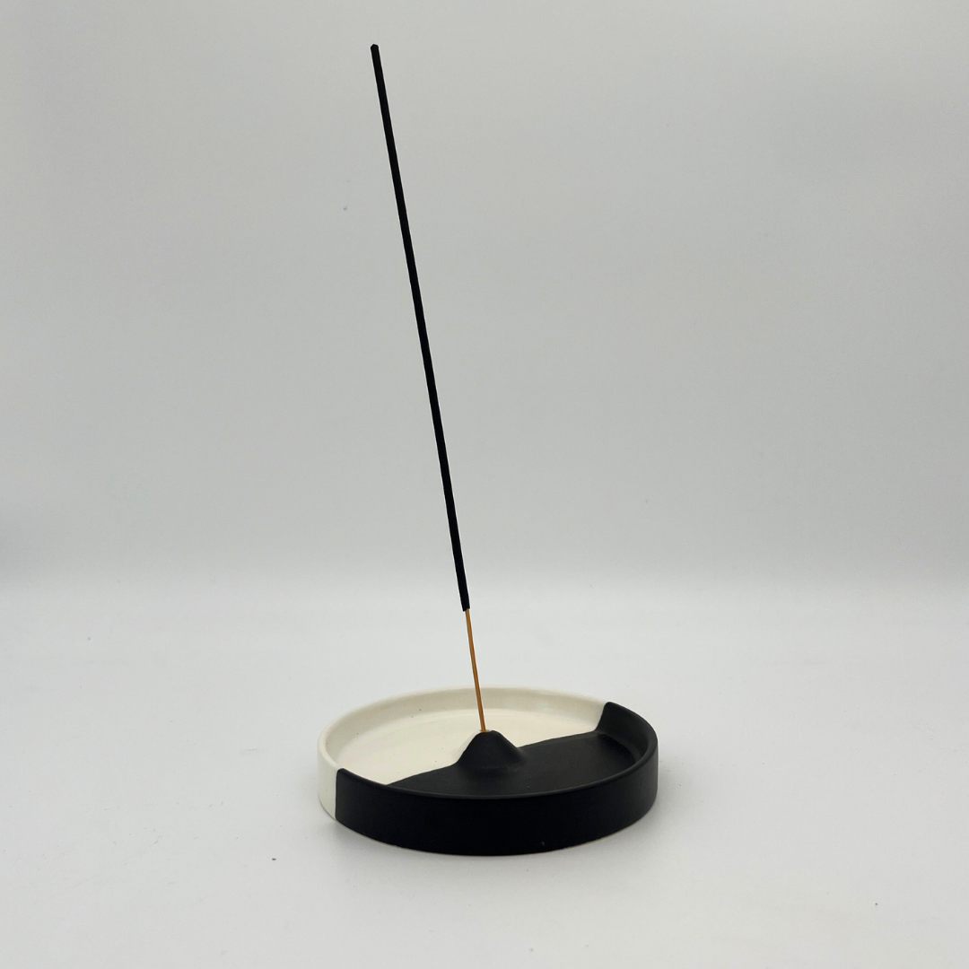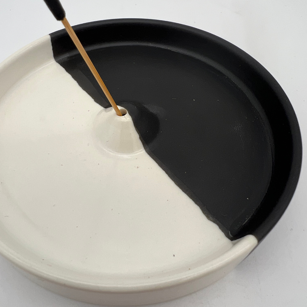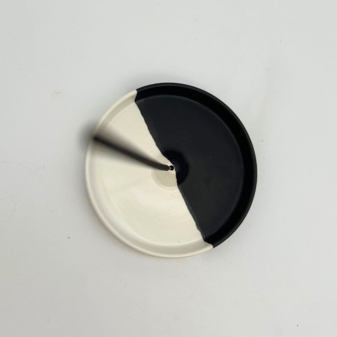 a sunny day wierook houder - wierookhouder - keramiek - rond - zwart en wit