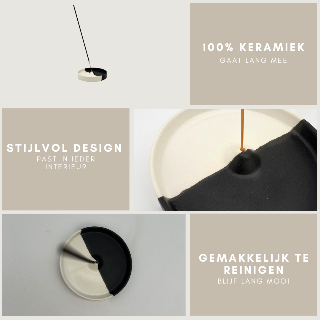 Kom helemaal tot rust met wierook dankzij deze moderne wierookhouder, gemaakt van keramiek. In de winter binnenshuis te gebruiken voor een heerlijke rustgevende aroma in je huis, of in de zomer op je balkon of in je tuin. Dankzij zijn tijdloze uitstraling past deze stijlvolle wierookhouder bijna overal in je interieur. Ook ideaal als leuk cadeau. Praktisch en stijlvol!