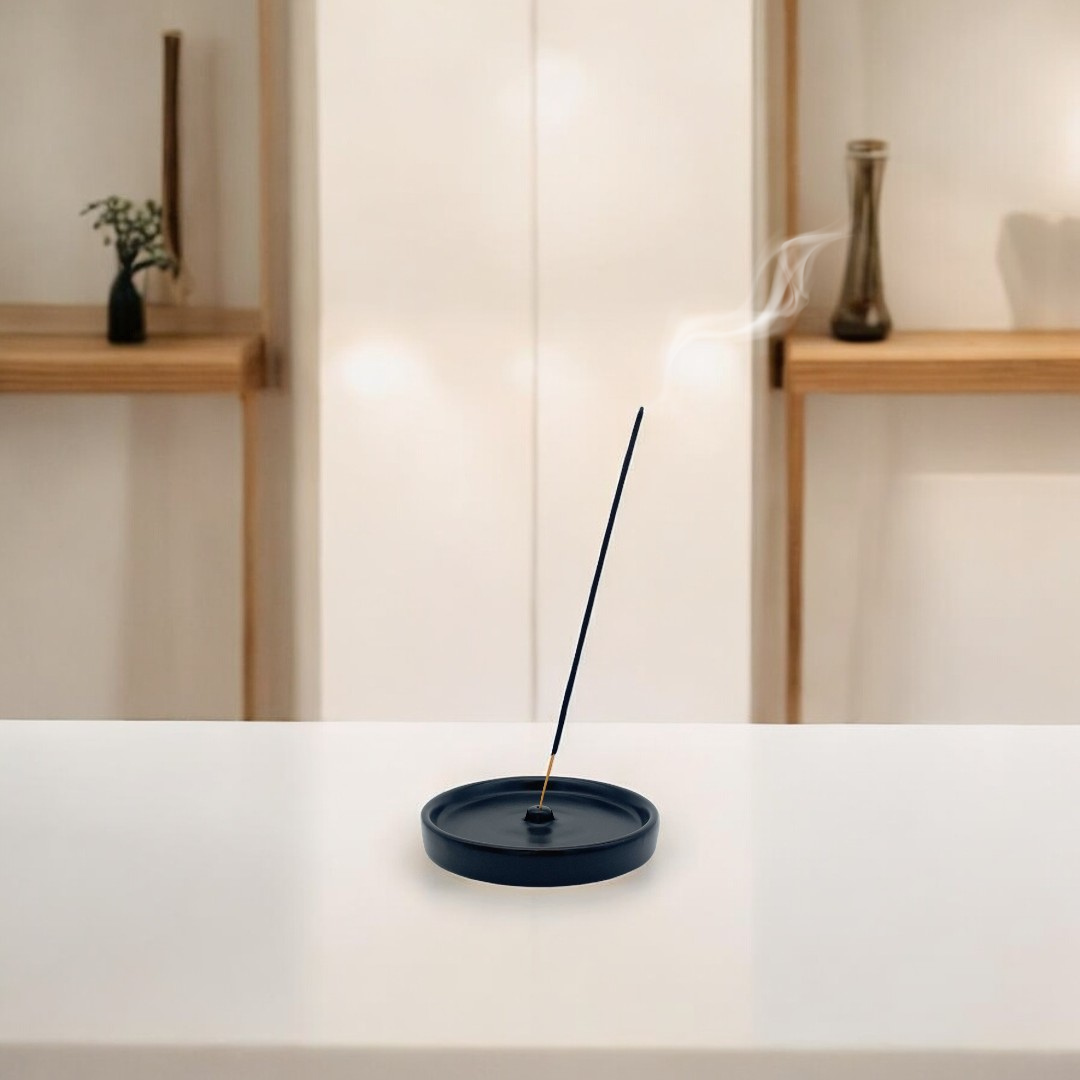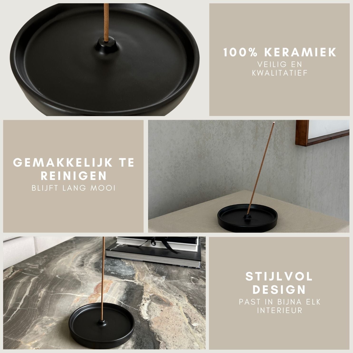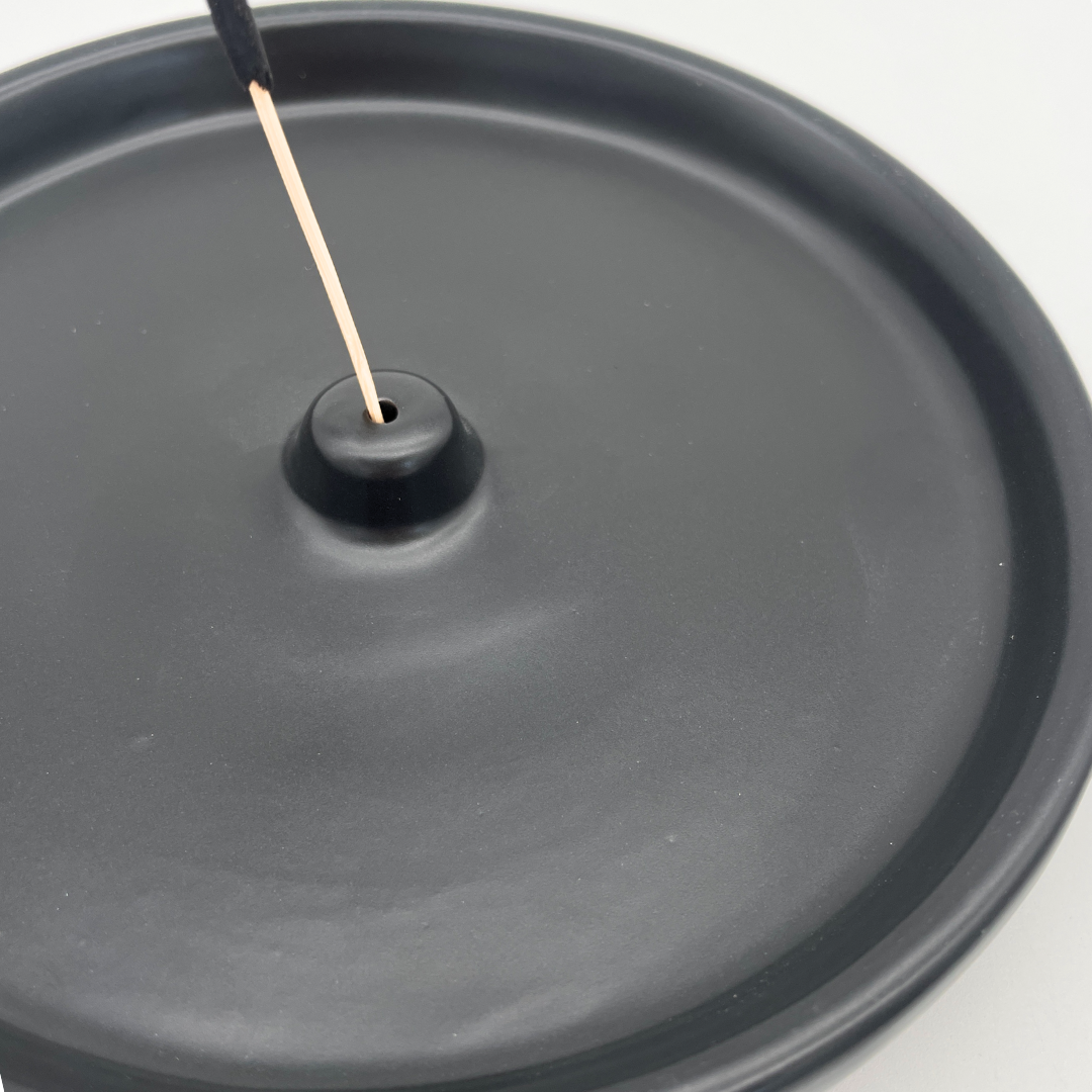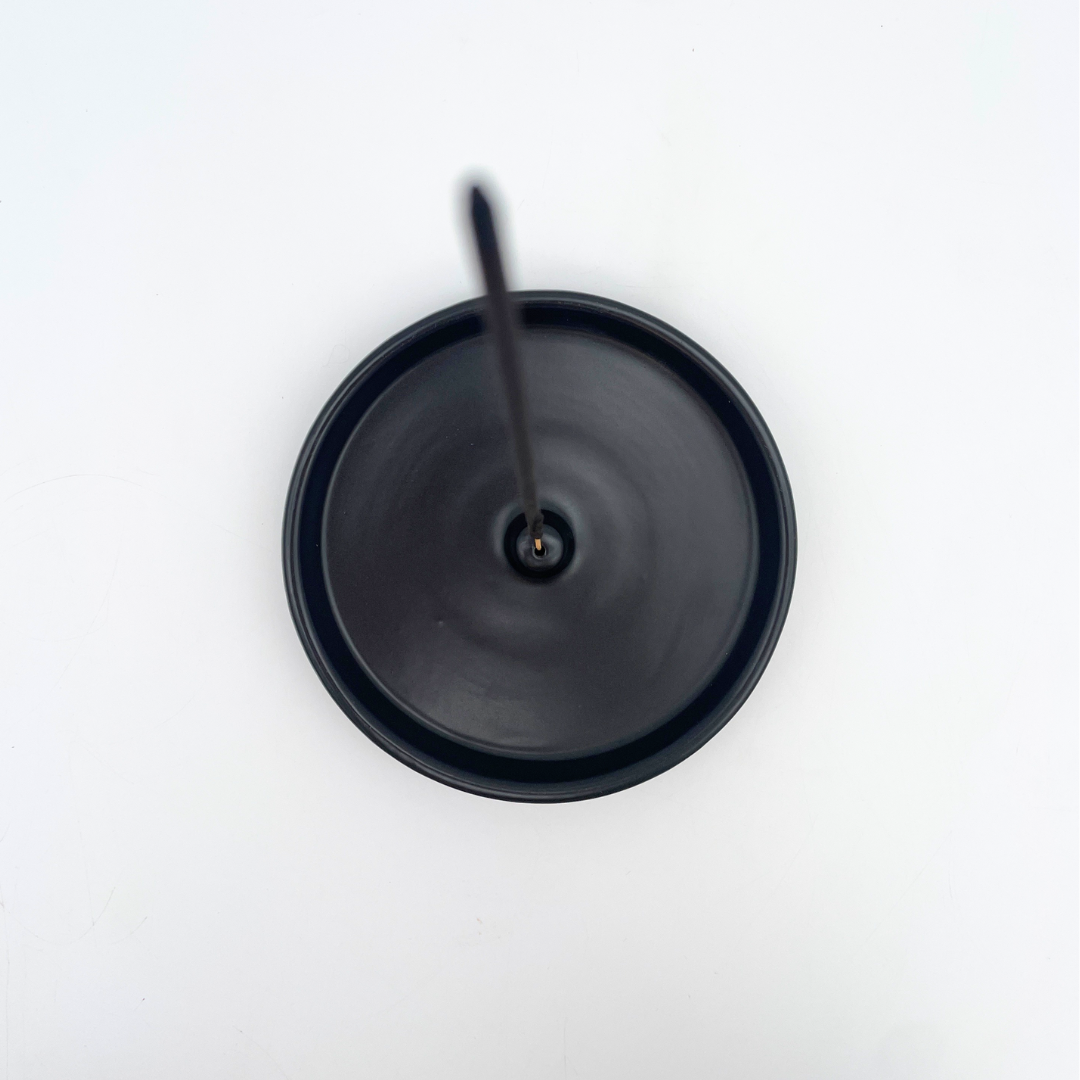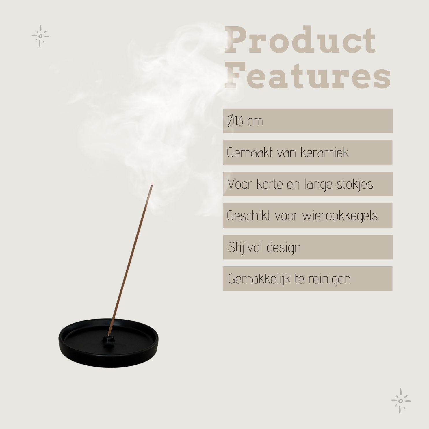 Wierookhouder - keramiek - zwart - rond - Ø13 cm